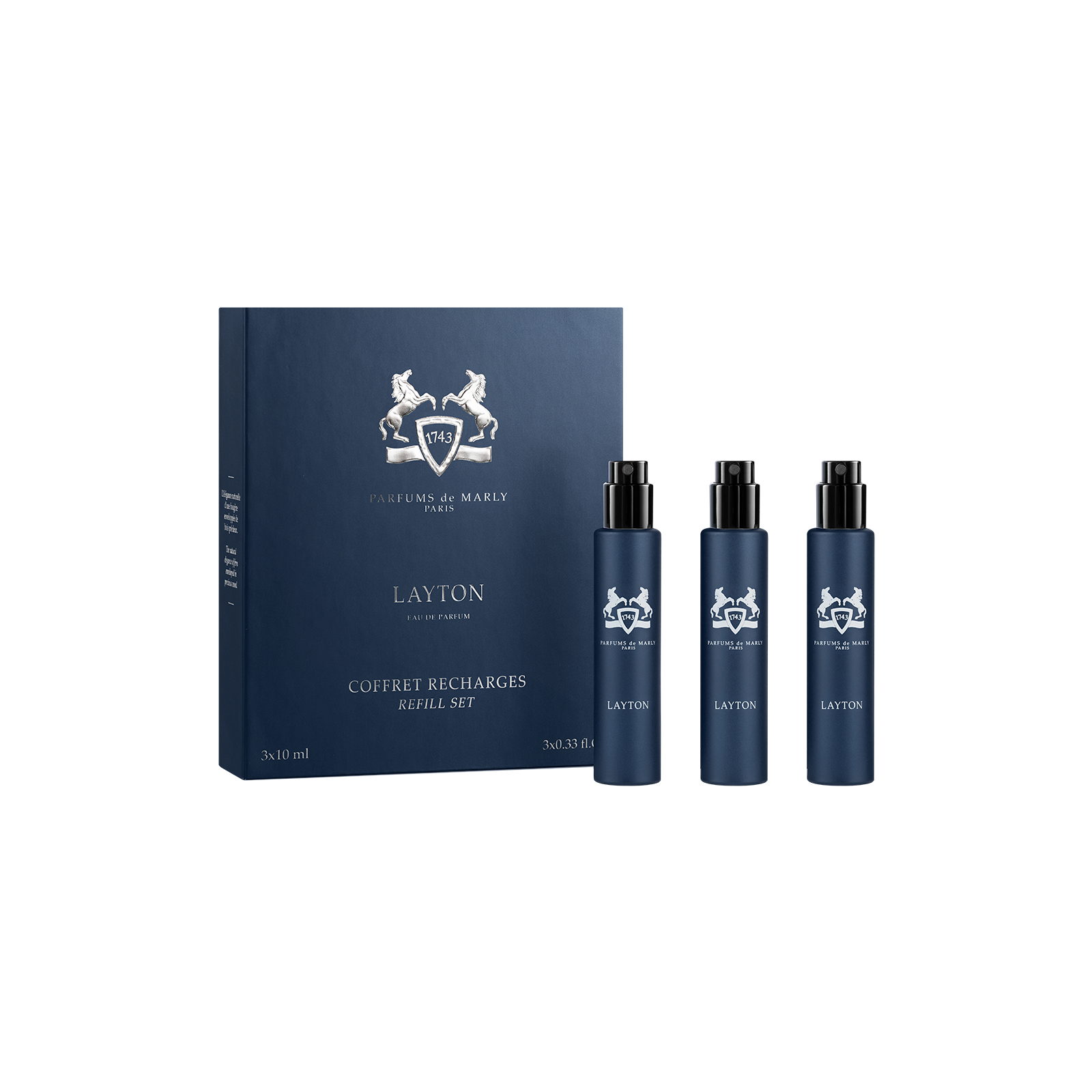 The Layton Refill Set elegantly extends the art of perfumery. It includes three 10 ml refills, perfectly designed for the Parfums de Marly Travel Case. A creation that remains true to the Maison’s playful and distinctive spirit.